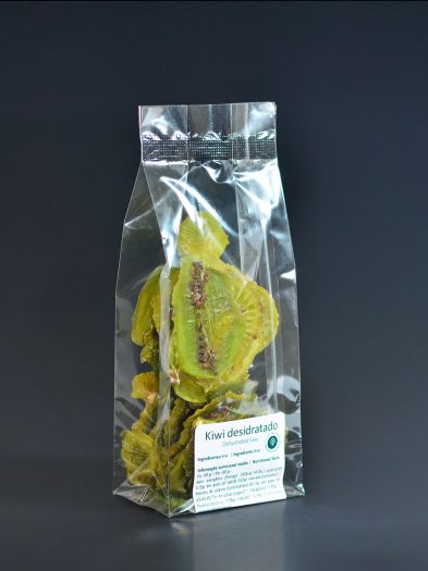 Este novo produto, saudável e 100% natural, é elaborado a partir de kiwi fresco (um fruto com elevado valor nutricional), submetido a um processo de desidratação totalmente natural e isento de quaisquer aditivos químicos (corantes ou conservantes), mantendo toda a sua riqueza nutricional. Uma embalagem de 50 g de kiwi desidratado corresponde aproximadamente a 1 kg de kiwi fresco.