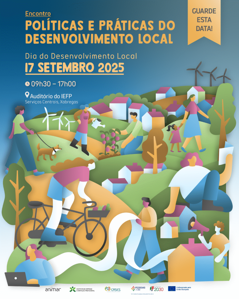 No próximo dia 17 de setembro de 2025, a Animar – Associação Portuguesa para o Desenvolvimento Local assinala mais uma edição do Dia do Desenvolvimento Local, com o Encontro “Políticas e Práticas do Desenvolvimento Local”, que decorrerá no Auditório dos Serviços Centrais do IEFP, I.P., em Xabregas (Lisboa), entre as 9h30 e as 17h00.