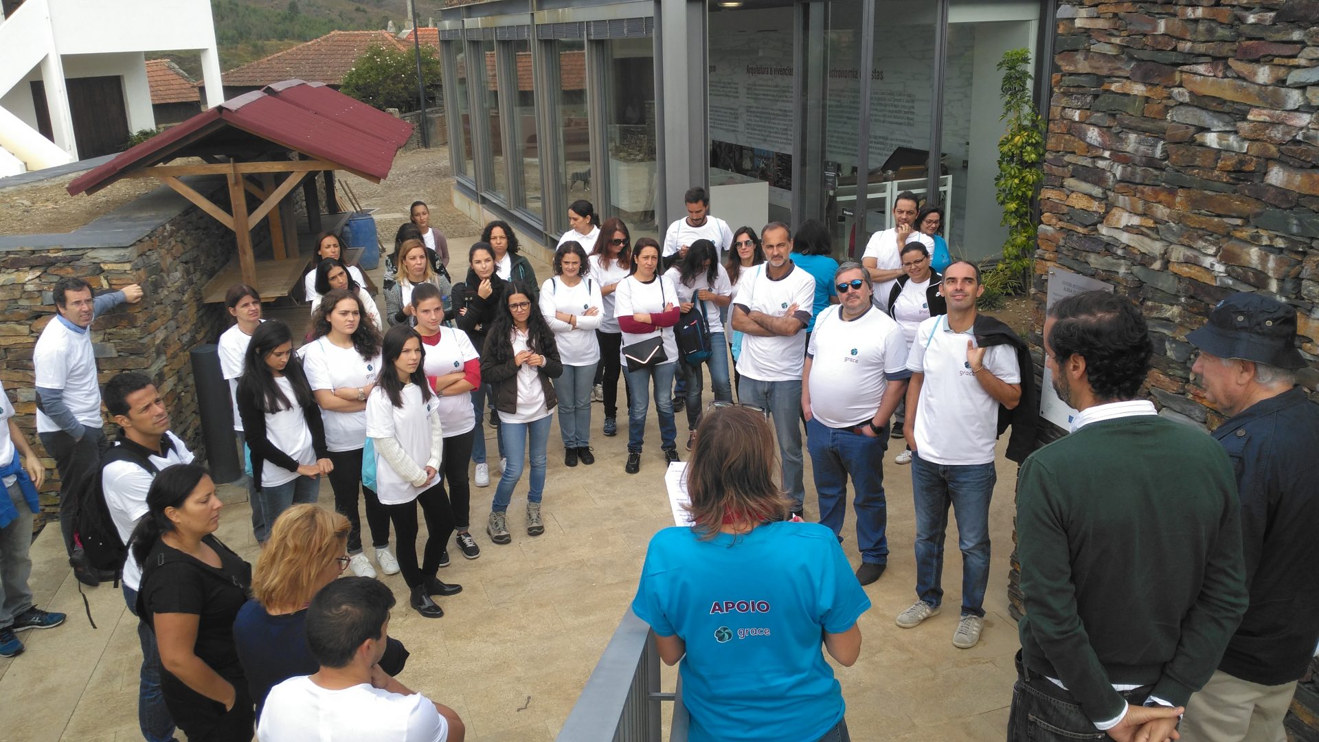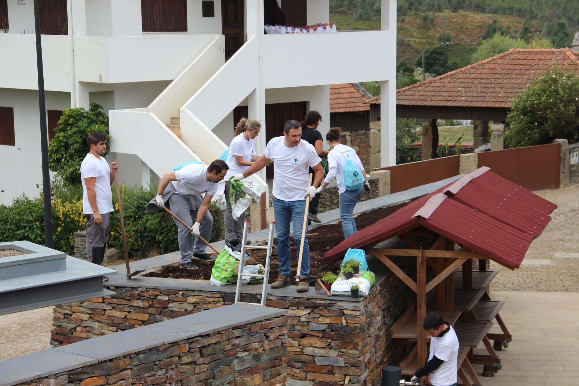 A Aldeia de Quintadona foi um dos 11 locais escolhidos pelos voluntários das empresas do GRACE para desenvolverem o GIRO 2018 (GRACE – INTERVIR – RECUPERAR – ORGANIZAR) cujo tema foi “Em Defesa do Património”. Assim, no passado dia 12 de Outubro, 43 voluntários de 6 empresas do GRACE e de 3 organizações locais desenvolveram tarefas de embelezamento dos espaços públicos e de espaços pertencentes à Associação Casa Xiné.