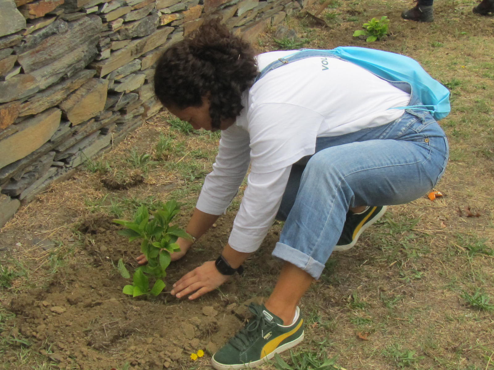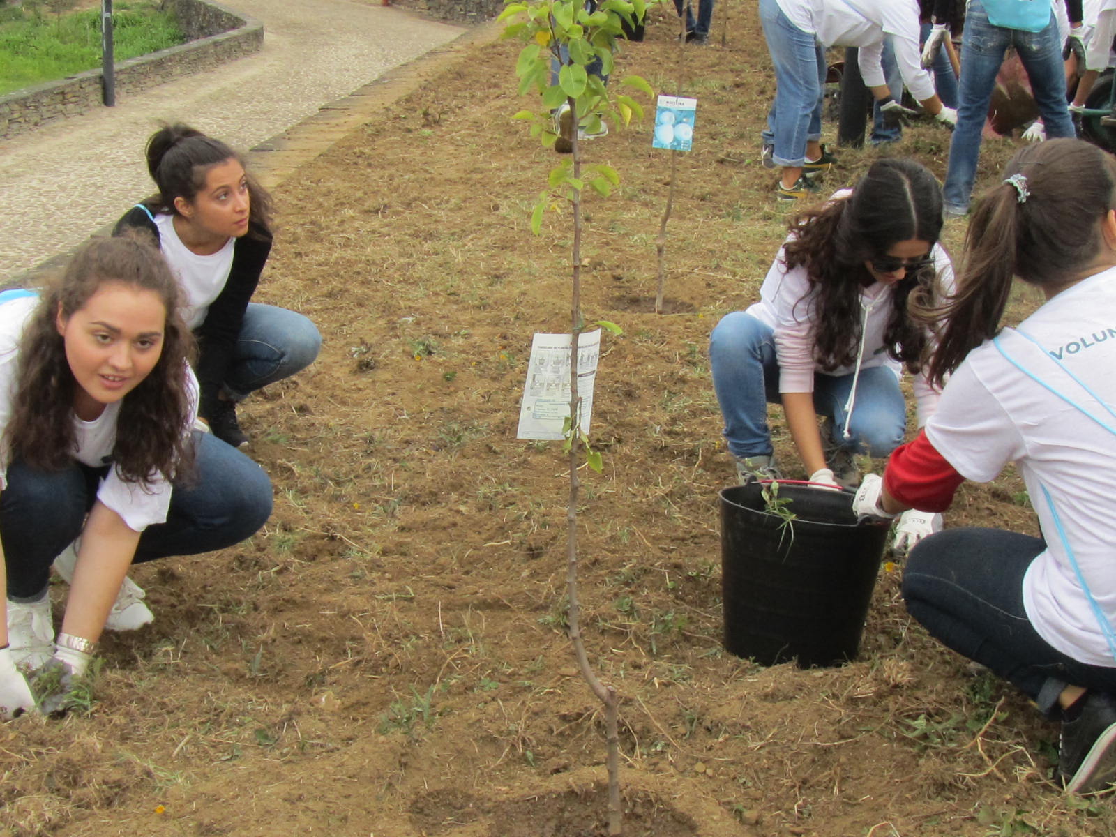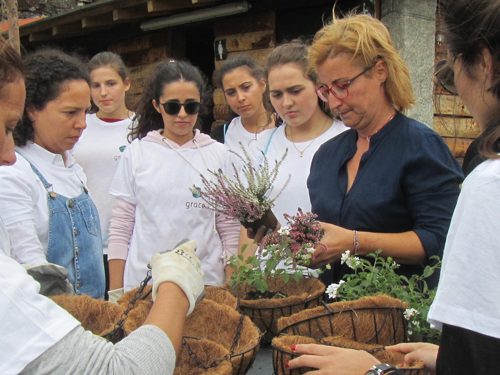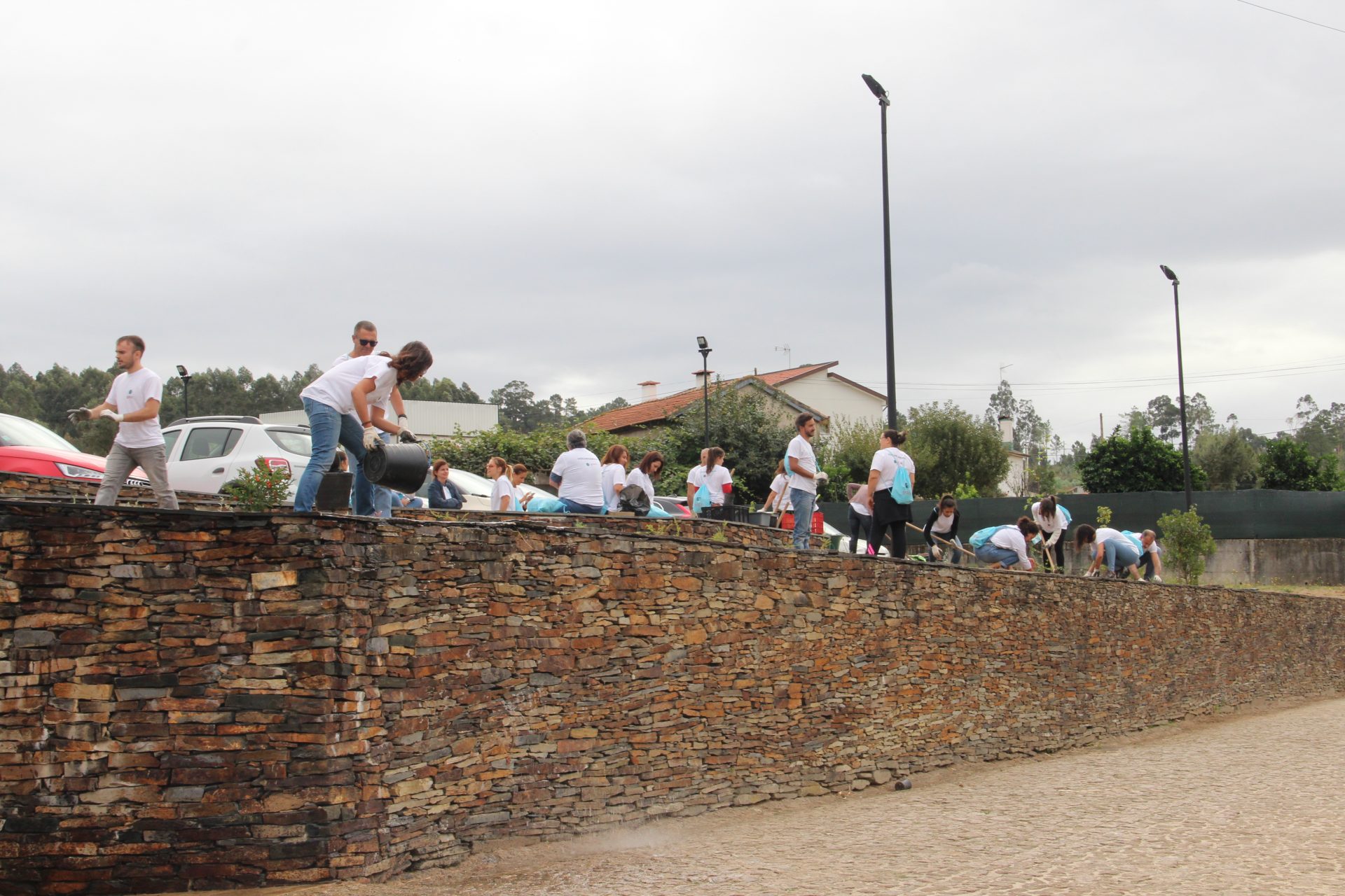 De tarde, plantaram-se trepadeiras e preparam-se os vasos que foram colocados ao longo da aldeia. No final foi feito um jardim vertical.