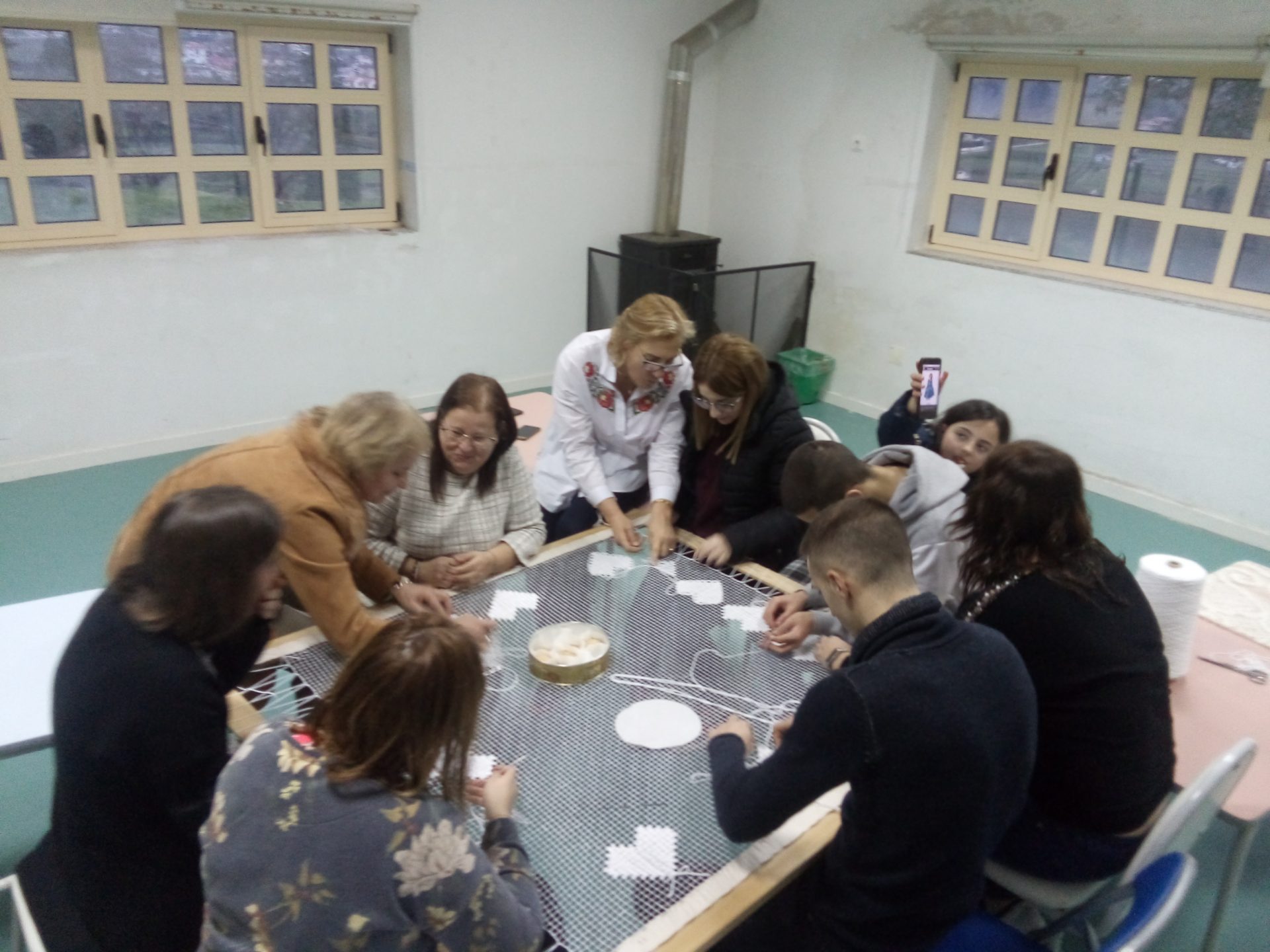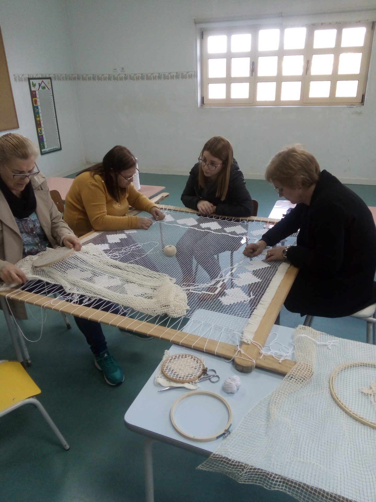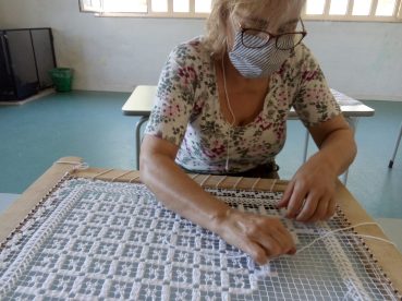 Interrompida durante alguns meses, pela situação de pandemia que o país atravessa, foi retomada em Julho, onde os formandos, de todas as idades e alguns sem experiência na arte, aprenderam sobre os tipos de pontos, a produção de redes e bastidores.
